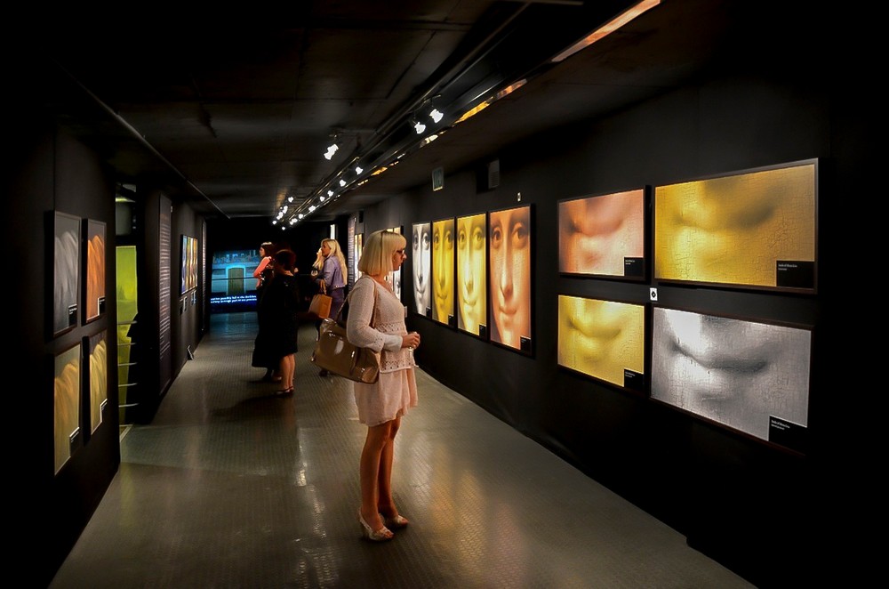 The Secrets of Mona Lisa is an up-close and personal meeting with the world's most iconic painting. Visitors are immersed in super-magnified visual examinations and detailed explanations of what actually makes this mysterious masterpiece so special. Over 40 super-magnified high-resolution sec tional images of the Mona Lisa document Cotte’s findings, including a 4m (13ft) high infrared print, and a world first composite revelation of the lost painting behind today's Mona Lisa.